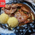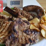 св.флейки, св. ребра, пил. филе, домашна наденичка, гарнирани с пържени картофи и зелена салата / pork steaks, pork ribs, chicken, homemade sausage, garnished with chips and salad