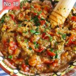 Beef, onion, peppers, tomatoes, roasted in a sach