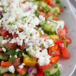 tomato, cucumber, pepper, cheese, onion, parsley